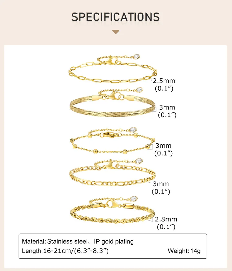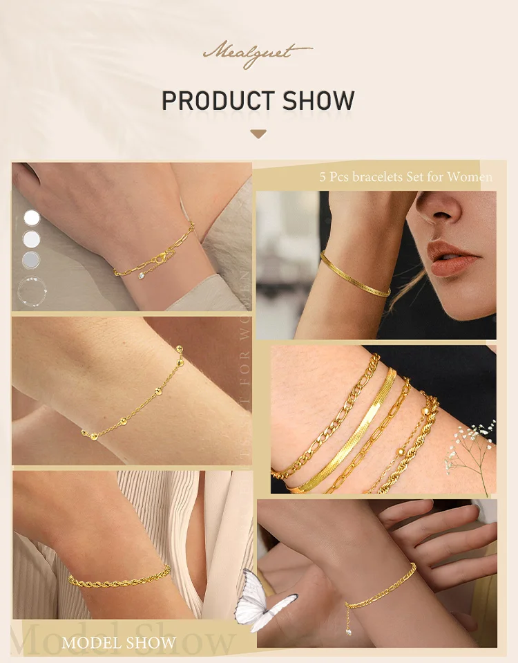 - Versatile 5-piece set can be worn as a stack or individually for a personalized look.